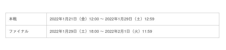 開催期間:2022年1月21日(金)12:00 ~ 2022年2月1日(火) 11:59
