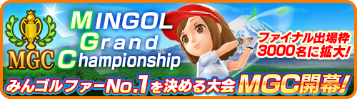 MGCは、『みんゴル』上の「みんゴルファー(=プレイヤー)」No.1の座を競う大会で、「MGC本戦」と「MGCファイナル」で構成されます。