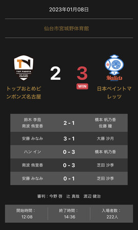 トップおとめピンポンズ名古屋と日本ペイントマレッツの試合は、