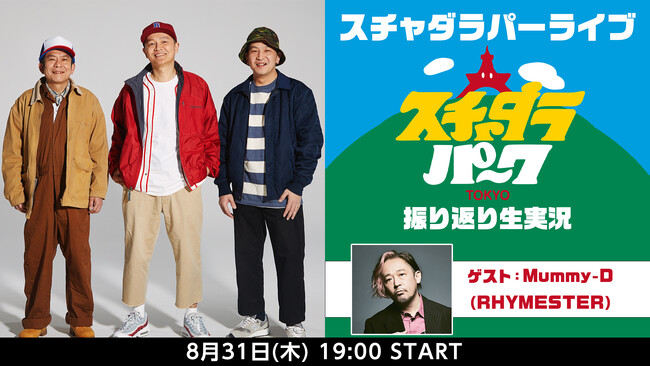 スチャダラパー、Mummy-Dがスタジオから生出演し、ライブ映像を振り返り実況しながら、