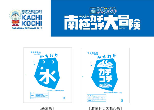10万年前の南極を舞台に、のび太たちが繰り広げる熱い友情と冒険の物語を描いた本作ですが、氷の世界でのストーリーであること、タイトルにある“カチコチ”というワードがあることから、この度、阪神甲子園球場で長く活躍している「氷」の「かちわり」とのスペシャルコラボレーションを実施することとなりました!カチコチな氷のデザインを施した「ドラえもん かちわり」が、夏の全国高等学校野球選手権大会が開催されている、暑い熱い甲子園をさらに盛り上げます!