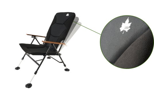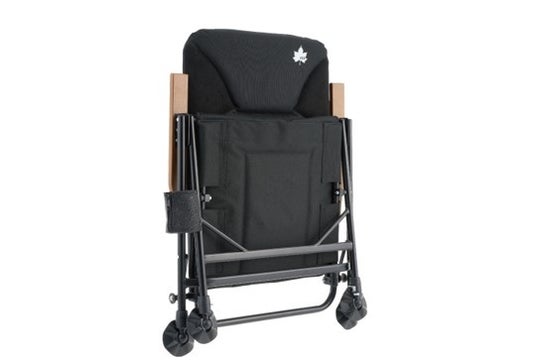そのほか、アーム部分にはぬくもりのある木製パーツを使用しており、アウトドアはもちろん、家のインテリアにも馴染むデザインです。収納時は折り畳めばコンパクトになるため、持ち運びや保管の際にも便利です。