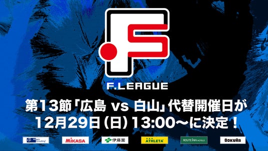 土砂災害および洪水警戒に伴う避難指示が発令されたことを受けて開催を延期していたFリーグ ディビジョン2 第13節「広島 vs 白山」につきまして、代替開催日が決定しましたのでお知らせいたします。