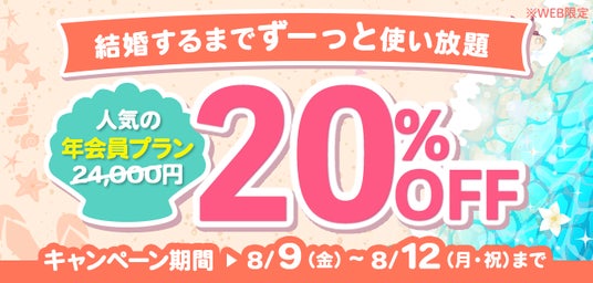 ブライダルネットでは、真剣な出会いを求める独身男女のために、夏の婚活応援キャンペーンを実施します。今回のキャンペーンでは、定価24,000円の年会員プランが20%割引でご利用いただけます。さらに、ブライダルネットの年会員プランは2年目以降の更新が無料のため、実質的に【結婚するまで使い放題】というお得なプランとなっています。