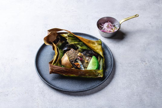 2.山口県産鰆のバナナの葉包み焼き「パタラシュカ」