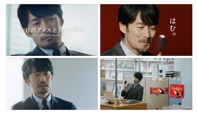 本CMでは、普段はどんな時でもスマートに決断をする竹野内豊さん演じる敏腕部長が、突然訪れる「#今日のアイスどうする問題」について真剣に悩むお茶目な姿と、竹野内部長の「PARM(パルム)」愛を描いています。