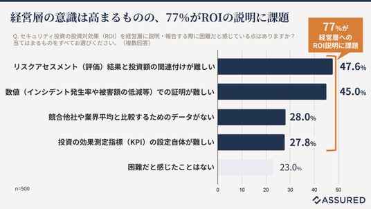 ● 76.2%で経営層のリスク意識が高まるものの、77%がROIの説明に苦慮