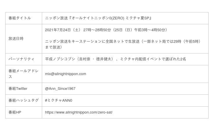 ニッポン放送『オールナイトニッポン0(ZERO) ミクチャ夏SP』番組概要