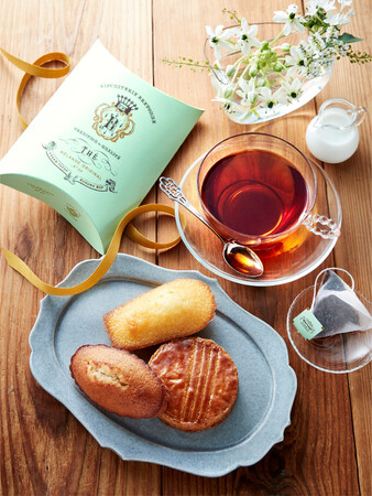 移設後も変わらず、 店舗厨房で毎日焼き上げる焼きたての焼き菓子や、贈り物にもお使いいただけるギフト商品を多数ご用意しております。また、移設 OPEN を記念して、限定のオリジナルバッグに自慢の焼き菓子と、焼き菓子に合うようにブレンドした新作のオリジナル紅茶を詰め合わせた特別なセットを 300 セット限定でご用意しております。