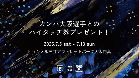 デンマークのスポーツブランドhummel(ヒュンメル)がサプライヤーをつとめているガンバ大阪が三井アウトレットパーク大阪門真で『GAMBA EXPO 2025』のPRイベントを実施。2025年7月5日(土)から7月13日(日)の期間中、ヒュンメル門真店で税込み5,000円以上お買い上げの方に、ガンバ大阪の倉田秋選手&福岡将太選手とのハイタッチ券を先着30名様にプレゼントします。