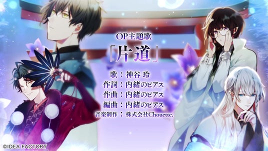 本日公開されたオープニングムービーでは、神谷 玲さんが歌うオープニングテーマ「片道」を聴きながら、本作の登場キャラクターや世界観など「勿ノ怪契リ」の世界を一足先に堪能することができます。是非ご覧ください!