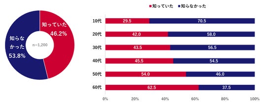また、大阪湾の夢洲(ゆめしま)で開催されることを知っている割合は46.2%だった。年代別で見ると、60代では6割を超え、他の年代より高かった。