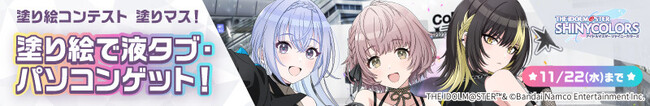 総勢28名のアイドルの塗り絵コンテストを開催します。コラボユニットのコメティックは特別な新衣装で登場します。入賞者にはPCや液晶ペンタブレット、関連グッズなど豪華賞品がプレゼントされます。