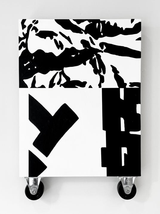 TYM344《On / Off #21》(2023)木製パネルにアクリル、車輪、478×318×50mm