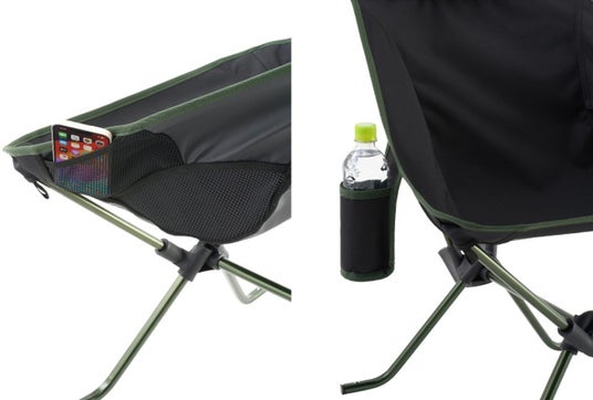 また、生地とフレームがわかれるセパレート構造によりコンパクトに収納でき、持ち運びに便利な収納バッグ付きです。そのほか、スマートフォンやちょっとした小物などを入れるのに便利なサイドポケットと、ペットボトルや缶飲料が入るドリンクホルダーも搭載しています。