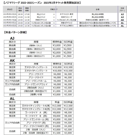 Tリーグでは、ノジマTリーグ 2022-2023シーズン 2023年2月開催の津山会場、京都府立会場、豊田合成会場のチケット販売スケジュールをお知らせします。
