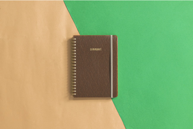 ノート5046の表紙にcommpostを、中紙には古紙パルプ70%以上配合した再生紙を採用。