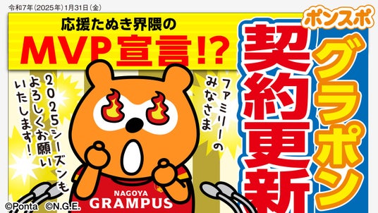 2025シーズン開幕を記念し、2025年2月14日(金)~2月16日(日)、「名古屋グランパス全力応援キャンペーン2025」を開催します。期間中、グランパスポンタ公式X(@nge_ponta)をフォローし、対象投稿をリポストした方に、選手のサイン入りグランパスポンタグッズや、名古屋(なごや)にちなんで、最大7,580Pontaポイントを抽選でプレゼントします。
