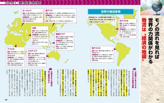 複雑な輸送ルートやサプライチェーンの仕組みを、豊富な地図や図版で解説。文字だけでは理解しにくい「モノの流れ」が一目でわかります。