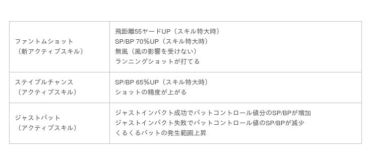 今回は、「Imperial」シリーズから、ギアガチャには最大パワーが530かつ、新アクティブスキル「ファントムショット」に加え、アクティブスキル「ステイブルチャンス」「ジャストパット」を搭載した新ギア「インペリアルファントムクラブ」が登場いたします。ウェアガチャにもパッシブスキル「集中力(ラージインパクト)」「Imperial(all)」「超幸運パット(PC/PI)」など、複数スキルを搭載した新作ウェアが登場。この新作ウェアは「10回プレイ」2・4・6・8セット目で確定となります。ぜひ、ご参加ください!