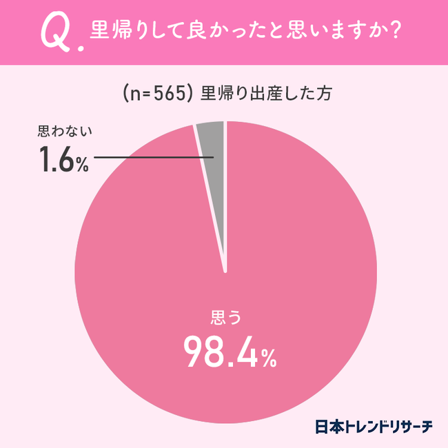 出産の際に里帰りをした98.4%の方が「里帰りをして良かったと思う」 と答えました。