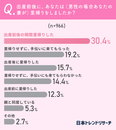 まずは、出産前後に(男性の場合あなたの妻が)里帰りをしたか聞きました。