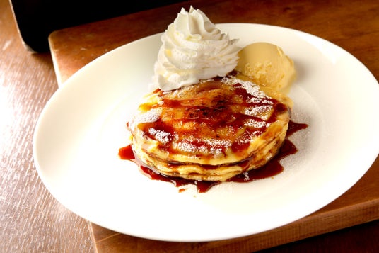 ふわふわのパンケーキ表面にカスタードクリームをたっぷり乗せ、表面をパリパリにキャラメリゼしたパンケーキとクレームブリュレが1度に楽しめるクア・アイナのオリジナルパンケーキ。
