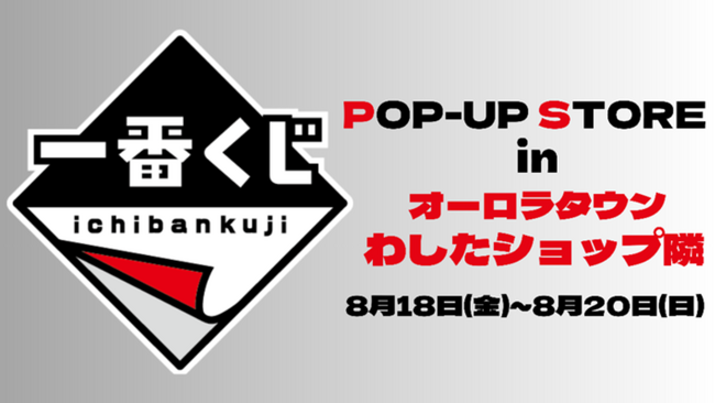 インパクトホールディングス株式会社の完全子会社で、人材サービス事業およびまるごと催事事業 (催事企画・運営) を展開している株式会社サツキャリ (本社:北海道札幌市中央区、代表取締役社長:川田 孝、以下「当社」) は、札幌地下街オーロラタウン わしたショップ隣 ポップアップスペースにて8月18日(金)~8月20日(日)の3日間限定で 「一番くじPOP-UP STORE」 を開催いたします。