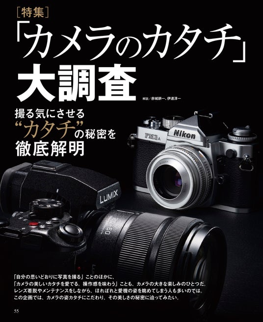 メーカーのデザイナーに聞く「カメラのカタチ」へのこだわりポイントのほか、カメラアナリスト伊達淳一さんが考える「操作が快適なカメラのカタチとは?」、カメラ購入は見た目の美しさで決めると語る赤城耕一さんの「カメラの愛でたくなる理由」などをお届けします。