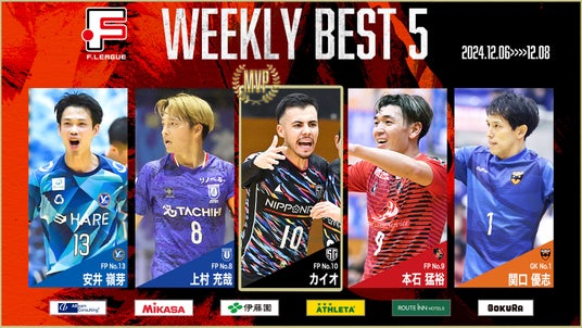 12月6日(金)~12月8日(日)に実施したFリーグ2024-2025 ディビジョン1 第18節の週間ベスト5を発表いたします。