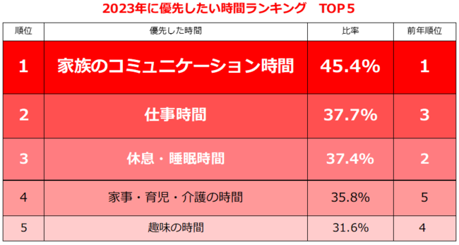 3.2023年に優先したい時間 1位「家族のコミュニケーション」45.4%