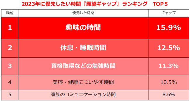 6.2023年に優先したい時間『願望ギャップ』/ランキングTOP5