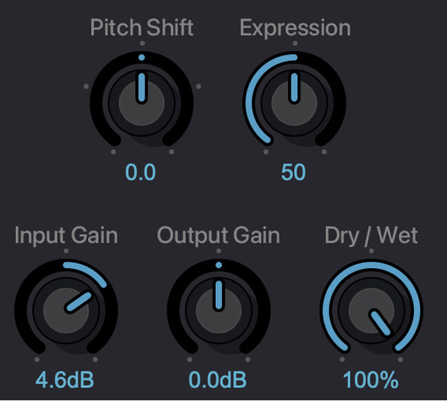 本プラグインで変換した歌声データには、その表現力を操作できるパラメータが5つ追加されます。それぞれ(1)音程を調整する「Pitch Shift」(2)歌声の強弱を変える「Expression」(3)(4)入出力される音量となる「Input Gain」と「Output Gain」、そして(5)AIボイスバンクの歌声と元のオーディオを混ぜられる「Dry/Wet」です。これらのパラメーターを操作すれば、歌声をリアルタイムに変化させられるので、クリエイターは自身が思い描く歌唱表現に向けて素早くボーカルディレクションが行えます。