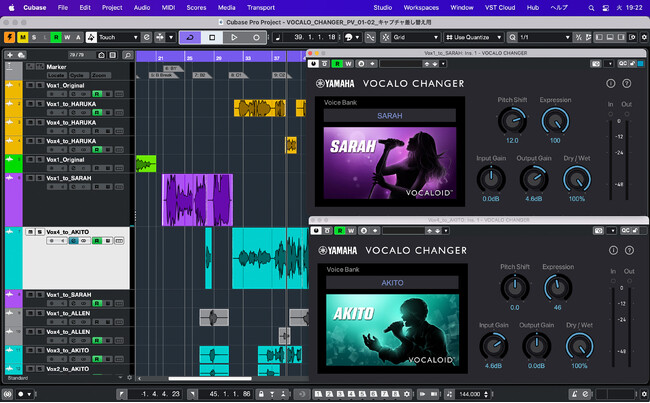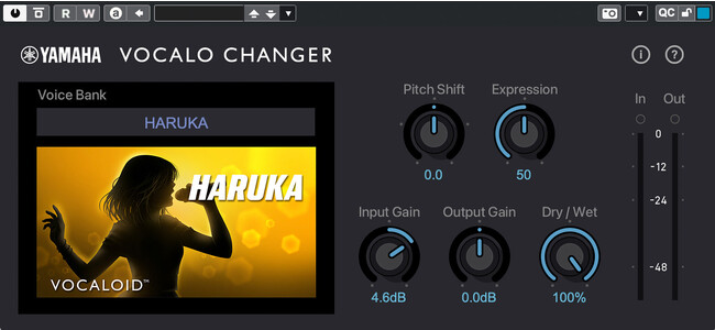 本プラグインにはVOCALOID6専用のAIボイスバンクと同じ、男女×日英の4つの豊かなボイスバンクHARUKA(ハルカ:日本語女性ボイスバンク)、AKITO(アキト:日本語男性ボイスバンク)、SARAH(サラ:英語女性ボイスバンク)、ALLEN(アレン:英語男性ボイスバンク)が同梱します。また、VOCALOID6ボイスバンク「AI:Megpoid」「符色(ふいろ)」の購入者は、それぞれの歌声を『VOCALO CHANGER PLUGIN』としてもご利用いただけます。その他のVOCALOID6ボイスバンクも順次対応する予定です。