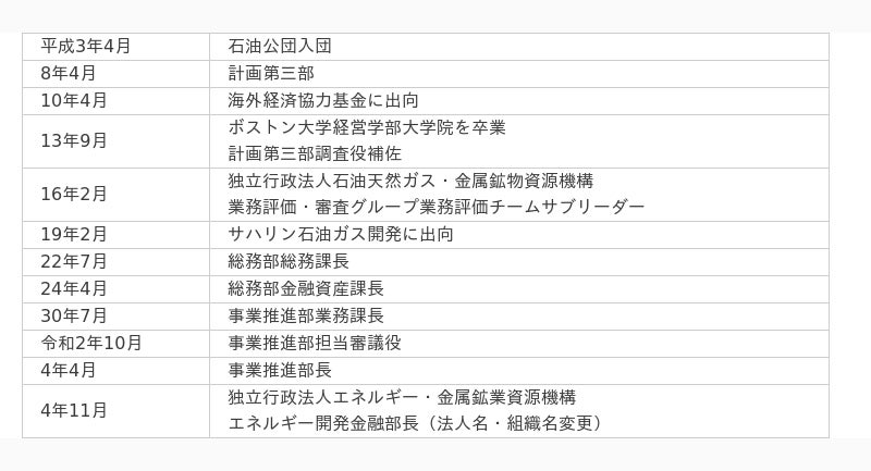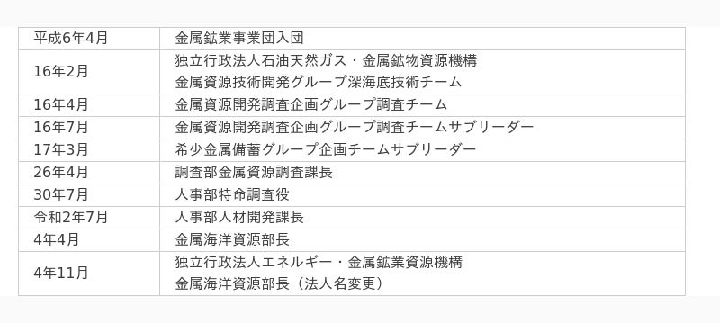 独立行政法人エネルギー・金属鉱物資源機構理事(エネルギー事業本部長)浅和 哲及び理事(金属環境・海洋・石炭本部長)五十嵐 吉昭は2024年2月29日付けで退任し、2024年3月1日付けで森 裕之が理事(エネルギー事業本部長)に、関本 真紀が理事(金属環境・海洋・石炭本部長)に就任いたしましたのでお知らせいたします。