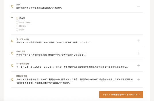 - 第三者評価による信頼性と鮮度の担保:クラウドサービス事業者の自己申告だけでなく、専門知識を持つAssuredが評価した客観的な情報を併せて確認できます。クラウドサービス事業者が回答を更新するたびに最新の評価結果が反映されるため、鮮度の高い情報に基づいた安心な選定が可能になります。