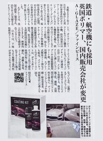 カーディテイリングニュースに掲載:鉄道・航空機にも採用。英国ポリマー、国内販売会社が変更。