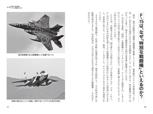 本書は、その経験をもとに、F-15戦闘機の発進から帰投までの実際、対領空侵犯措置による緊急発進(スクランブル)、日々の訓練、アグレッサーパイロットの操縦技術など、さまざまな場面で「みなさまが抱く疑問」の数々を解き明かしていきます。