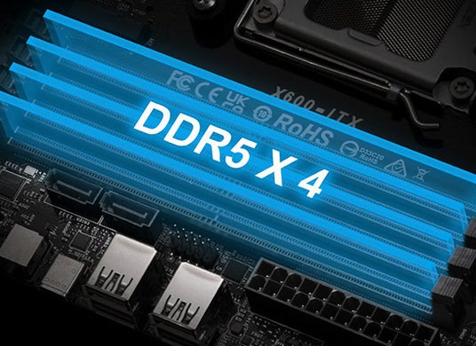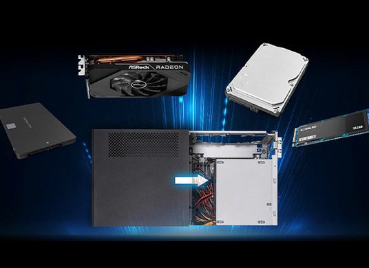 Ryzen 8000/7000シリーズ対応、DDR5-7200+(OC)スロットx4、横幅20cmまでのグラフィックボード搭載が可能で、W168 x D219.3 x H218.3mmの小型サイズながら様々な用途にお使いいただけるベアボーンとなっています。