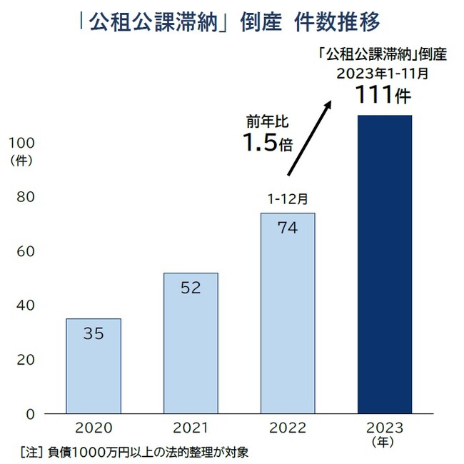 全国企業倒産集計2023年11月報 別紙号外リポート:「公租公課滞納」倒産