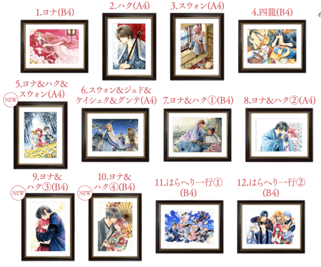 イラストはB4サイズとA4サイズ。全12種。受注生産制。