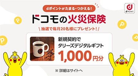 本保険の提供開始を記念し、新規でご契約いただき、お申込時の年間保険料が1,000円以上のお客さまを対象に、毎月抽選で20名さまにタリーズコーヒーでご利用いただける1,000円分のデジタルギフトを進呈します。