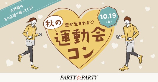 「PARTY☆PARTY」では、全国で約2,400本(8月実績)のイベントを開催し、様々なテーマに沿った婚活パーティーをご用意しております。今回は、スポーツの秋にちなんで「秋の大運動会コン」を開催。こちらの企画は昨年も大好評で、「運動会コンまたやってください」「また参加したいです!」というお客様の要望にお応えし、開催が決まりました。