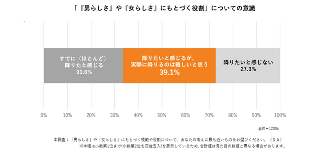 「性別にもとづく役割から降りたいが難しい」と感じる人は全体の4割。