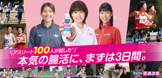 森永乳業は、2020年の発売から便秘気味でお悩みの方に寄り添ってきた『ビフィズス菌BB536』を配合した機能性表示食品「ビヒダス ヨーグルト 便通改善」が展開する、「便通改善プロジェクト※1」の新たな取り組みとして、様々な職業やシーンで便通に悩みを抱える方に注目しました。第1弾として、特に腸内環境が崩れやすいと言われている陸上アスリートに着目し、元陸上競技選手 高橋尚子さんをはじめ、中・長距離陸上競技選手 廣中璃梨佳さん、短距離を専門とする陸上競技選手 兒玉芽生さん他、陸上競技者100人に「ビヒダス ヨーグルト 便通改善」をトライアルしていただき、リアルな声を伺いました。