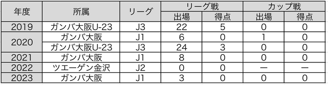 ガンバ大阪ジュニアユース - ガンバ大阪ユース - ガンバ大阪 - ツエーゲン金沢(育成型期限付き) - ガンバ大阪