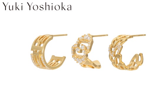 ブランド名: Yuki Yoshioka(ユーキ ヨシオカ) 片耳ピアス:各19,800円 素材:SV925 、K18イエローゴールドコーティング、キュービックジルコニア