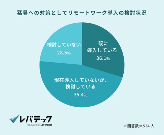 - 猛暑への対策として、新たに約3割がリモートワークの導入を検討