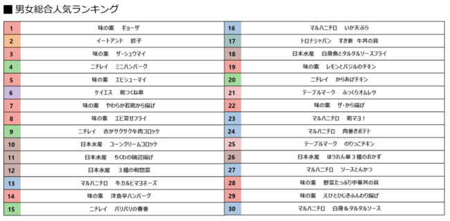 【男女総合・購買ランキング】冷凍食品の総合ランキング(TOP30)