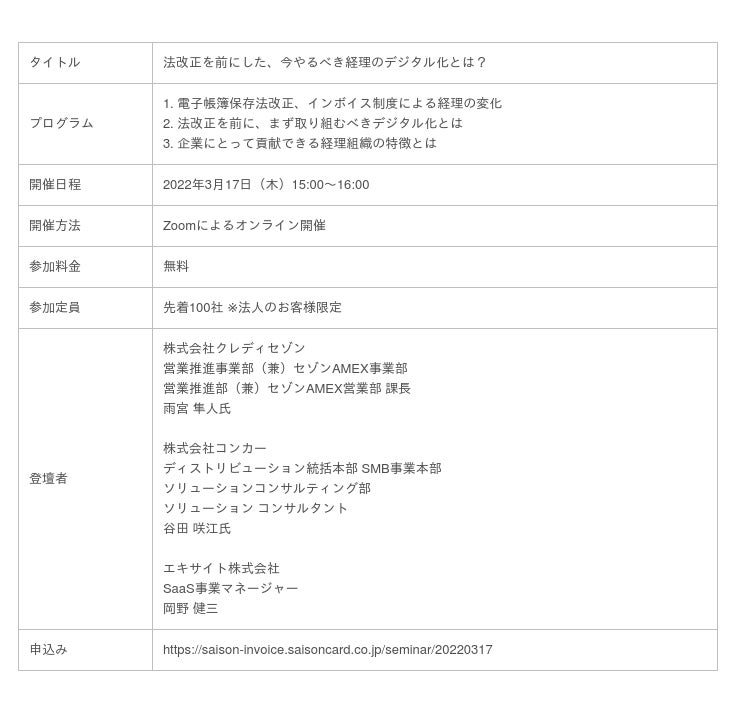 お申込みはこちら:https://saison-invoice.saisoncard.co.jp/seminar/20220317